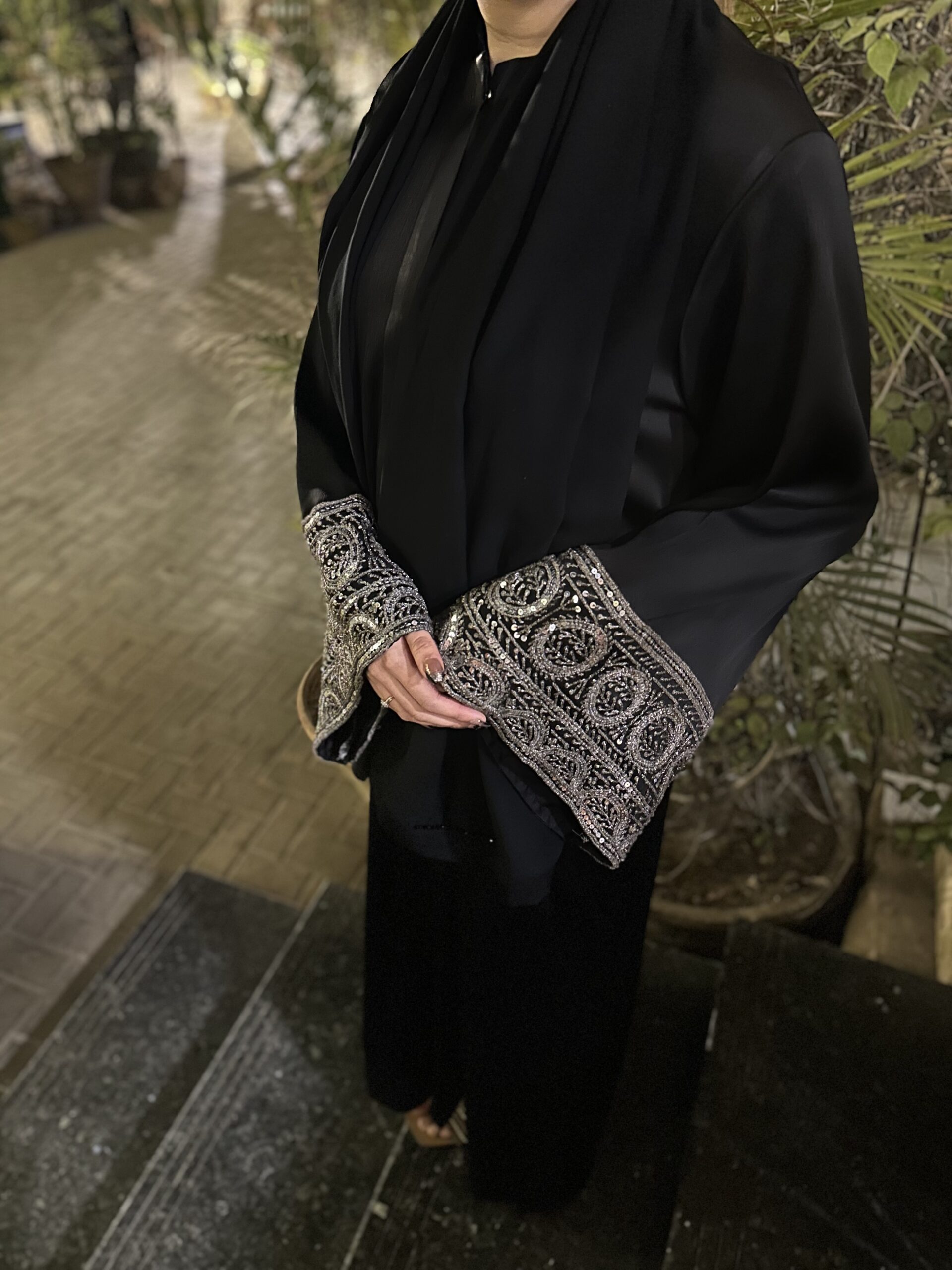 Made from premium silk fabric — lightweight, breathable, and soft to the touch. Known for its elegant fall and comfort, it’s an ideal choice for abayas.